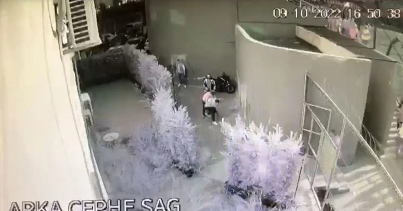 Saldırı öncesi tekme, yumruklar ve çöp kovalı kavga kamerada