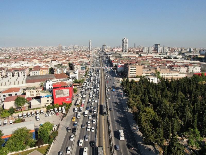 Kontrollü normal hayata geçişin ikinci haftasında yaşanan trafik yoğunluğu havadan görüntülendi. Megakentte trafik yoğunluğunun yüzde 38’i bulduğu görüldü.