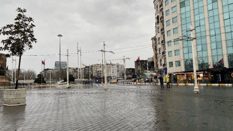 Korona virüs nedeniyle uygulanan hafta sonu sokağa çıkma kısıtlamaları kapsamında Taksim turistlere kaldı. Türkiye’nin en kalabalık meydanlarından biri olan Taksim Meydanı önceki kısıtlamalarda olduğu gibi yine sessizliğe büründü. Sabah saatlerinde ara ara yağış etkili oldu. Meydanda az da olsa yürüyen bazı vatandaşlar şemsiyeyle korunurken bazı vatandaşlar ise yağmura hazırlıksız yakalandı.