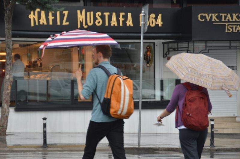 Saat 07.30’dan sonra etkili olmaya başlayan yağmur şehrin önemli noktası olan Taksim Meydanında etkisini hissettirdi. Sabah saatlerinde evlerinden çıkan vatandaşlar yağmura hazırlıksız yakalandı.