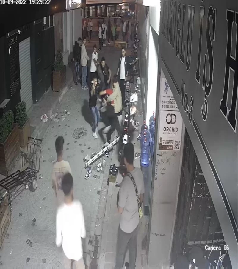 Ortalığın bir anda karıştığı kavgaya diğerlerinin de karışması üzerine taraflar birbirlerine vurmaya başladı. Diğerlerinin araya girmesiyle taraflar ayrılırken, küfürleşmenin devam etmesi üzerine saldırıya uğrayan grup diğerlerinin peşinden koşmaya başladı. İşyerinin önündeki eşyaların da zarar gördüğü kavga anları ise kameralara yansıdı. Olayla ilgili tarafların birbirlerinden şikayetçi olmadığı öğrenildi.