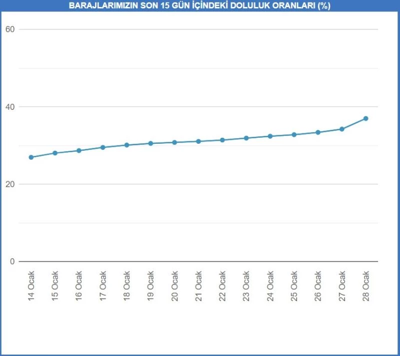 Öte yandan son 10 yıllık doluluk oranında ise en düşük doluluk oranı 28 Ocak 2014 tarihinde yüzde 32.55 olarak gerçekleşti. Böylece son 10 yılda en düşük doluluk oranı 2014 yılında ölçülmüş oldu.