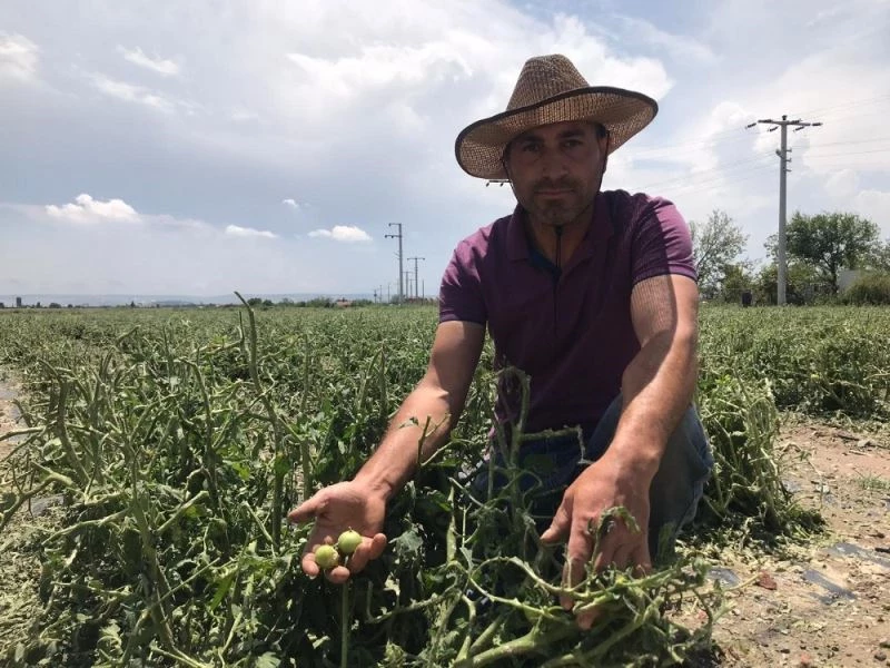 Çiftçilik ile uğraşan Erhan Çömlekçi de yağıştan bütün çiftçilerin etkilendiğini ve ilk defa böyle bir şey ile karşılaştıklarını söyleyerek, “Tarlada çapa yapıyorduk. Zaten bayağıdır çamurdan girilmiyordu. Bir anda fırtınalı bir şekilde dolu geldi. Yaklaşık 20 dakika sürdü. Böyle bir dolu yağışını hiç görmemiştim. İlk defa böyle şiddetlisini gördük. Aldı götürdü, hiçbir şey bırakmadı. Otları bile parçaladı, ağaç bile kalmadı. Domates tarlamızda yüzde 100 hasar var ama dönüm olarak dersek, 35-40 dönüm yerimiz var. Tamamıyla hepsini vurdu. Zaten Eskişehir’de Muttalıp bölgesindeki her yeri vurdu, bitirdi diyebiliriz. 1-2 kişiyi değil, bu bölgede 100-200 çiftçi varsa hepsini vurdu diyebiliriz.
