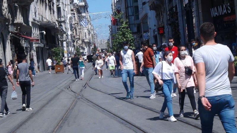 Kurban Bayramı’nın üçüncü gününde yerli ve yabancı turistlerin uğrak noktası olan İstiklal Caddesi ve Taksim Meydanında adeta iğne atsan yere düşmeyecek şekilde yoğunluk oluştu. Sıcak havanın etkisiyle gezintiye çıkan vatandaşların korona virüs tedbirlerini unuttukları gözlendi. Cadde içerisinde yürüyen vatandaşların bazılarının maske takmadığı, takanların da kuralına uygun takmaması dikkat çekerken, sosyal mesafe kuralı hiçe sayıldı.