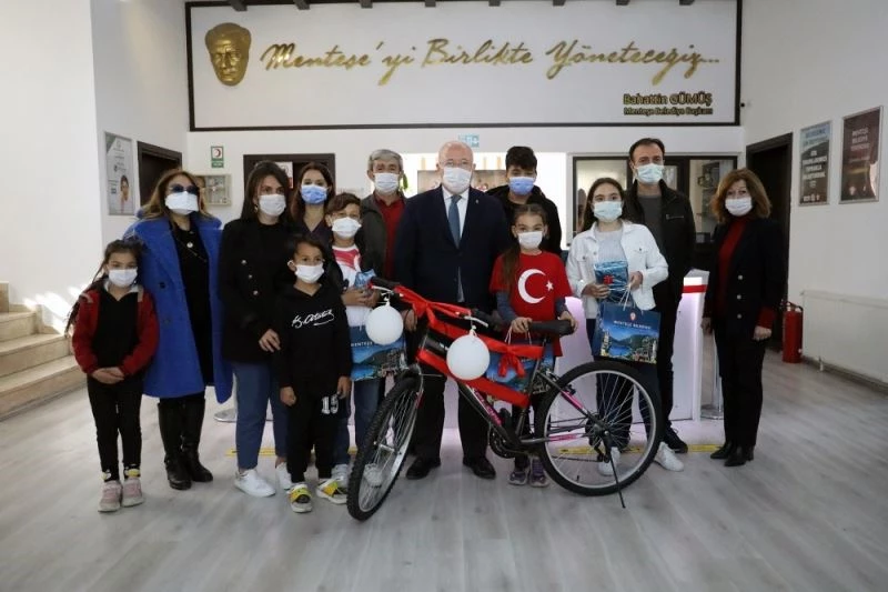 İstiklal Marşı Okuma yarışmasının ödül töreninde yarışmanın birincisi Aleyna Kaplan’a bisiklet, ikincisi Deren Akbaba’ya tablet ve üçüncü Atacan Kaplan’a akıllı saat ödülü Menteşe Belediye Başkanı Bahattin Gümüş tarafından takdim edildi.