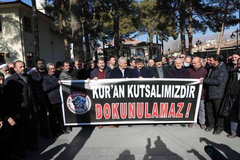 Erzincan’da İsveç’te Türkiye’nin Stockholm Büyükelçiliği önünde Kur’an-ı Kerim’in yakılması protesto edildi.