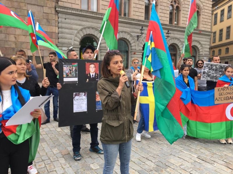 Azerbaycan-Ermenistan sınır hattında yaşanan gerilim devam ederken, yurt dışında yaşayan Azerbaycanlılar da Ermenistan’ın saldırıları protesto etmeye devam ediyor. İsveç’te yaşayan Azerbaycanlılar, başkent Stockholm’de bulunan İsveç Parlamentosu önünde toplanarak Ermenistan’ın Azerbaycan’a yönelik saldırılarını protesto etti. Protestoda Ermenilerin ve Azerbaycanlıların karşı karşıya gelmemesi için Stockholm polisi geniş çaplı güvenlik önlemi aldı. Protestoda açıklama yapan Ayda Haşimi, "Bugün İsveç Parlamentosu önünde toplanmamızın nedeni, Ermenilerin işgal ettikleri Azerbaycan topraklarını terk etmeleri lazım. Bu olaylarda demokratik İsveç hükümeti, Azerbaycan’a destek vermesi lazım" dedi. Haşimi, "Son günlerde saldırgan Ermeniler, askerlerimizi şehit etti. Şehitlerimize Allah rahmet eylesin, mekanları cennet olsun. Ermeniler şunu bilsin ki şehitler ölmez vatan bölünmez" şeklinde konuştu. Protestoda Ermenistan’ın Dağlık Karabağ’dan da derhal çıkması istendi. Göstericiler, "Karabağ bizimdir, bizim olacak", "Şehitler ölmez vatan bölünmez" şeklinde slogan atıldı.