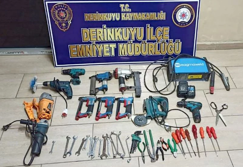 Edinilen bilgiye göre İl Emniyet Müdürlüğü Derinkuyu İlçe Emniyet Müdürlüğü ekiplerince işyerinden ve kurumdan hırsızlık olaylarının aydınlatılması amacıyla oluşturulan ekip tarafından çalışma başlatıldı. Yapılan çalışmalarda olayı gerçekleştirdiği tespit edilen şüpheli U.D. yakalanarak gözaltına alındı. U.D.’nin ikametinde yapılan aramalarda ise matkap, döşeme tabancası ve benzeri malzemeler ele geçirildi.