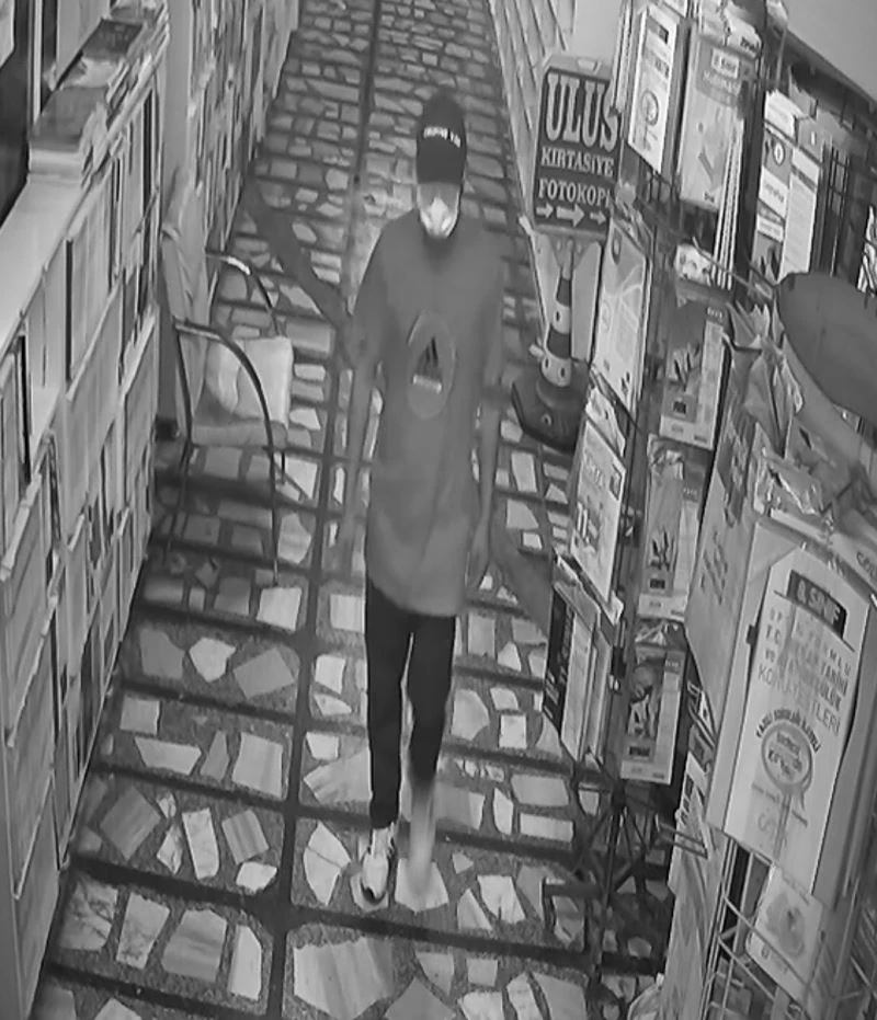 Olay, Yarenlik Alanı üzerindeki Uğur İş Hanı’nda meydana geldi. İş hanına gelen kimliği belirsiz bir şüpheli, koridorda bulunan ve esnaflara ait olan güvenlik kamerasına, yanında bulunan tahra ile vurarak zarar verdi. Ardından iş hanında bulunan kırtasiye dükkanının kapısını tahra ile kıran şüpheli, içeri girerek bilgisayar ile kasada bulunan bozuk paraları çaldı. Diğer işyerlerinin de kapısını zorlayan hırsız, ardından olay yerinden kaçtı. Sabah saatlerinde durumu fark eden esnaflar, emniyet güçlerine haber verdi. Yapılan ilk incelemede olaya karıştığı iddia edilen şahsın maskeli şekilde güvenlik kameralarına takıldığı gözlendi. Polis şüphelinin yakalanması için çalışma başlattı.