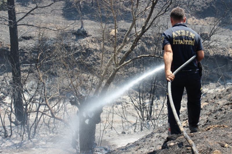 Efeler ilçesi İmamköy Mahallesi’nde çıkan ve rüzgarın etkisi ile çevre mahallere yayılarak 140 hektar alan küle dönmüştü. Ağırlıklı olarak asırlık zeytin, incir ve çam ağaçlarının bulunduğu bölgede çıkan yangın 48 saatte kontrol altına alındı. Aydın Büyükşehir Belediyesi İtfaiye Daire Başkanı M. Serdar Adanır, itfaiye personeline ve yangında görev alan diğer kurumlara teşekkür etti. Adanır, “İmamköy’den Emirdoğan’a giden yangında 48 saat aralıksız bir ağacı daha yanmaktan kurtarma gayreti içinde canla başla çalışan ateş savaşçıları namını sonuna kadar hak eden dostlarım kardeşlerim itfaiyeciler ve Büyükşehir Belediyesi Çevre Koruma, ASKİ ve Fen İşleri Daire Başkanlıkları ile Efeler Belediyesi, Orman İşletme personelleri Allah hepinizden razı olsun. Alın terinize saygıyla eğiliyorum var olun hepiniz. Allah’a emanet olun” ifadelerine yer verdi.