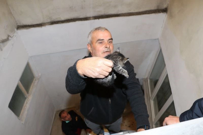 İtfaiye ekipleri 3 gündür mahsur kalan yavru kediyi kurtardı