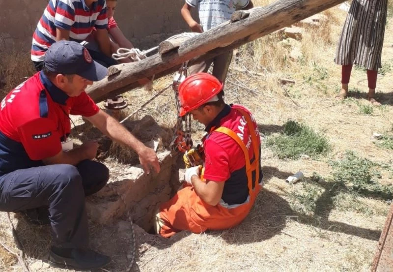 Halat yardımıyla kuyuya inen bir itfaiye eri, kediyi kurtarma düzeneğine bağladı. Kuyudan, kurulan düzenekle çıkarılan kedi, doğaya bırakıldı.