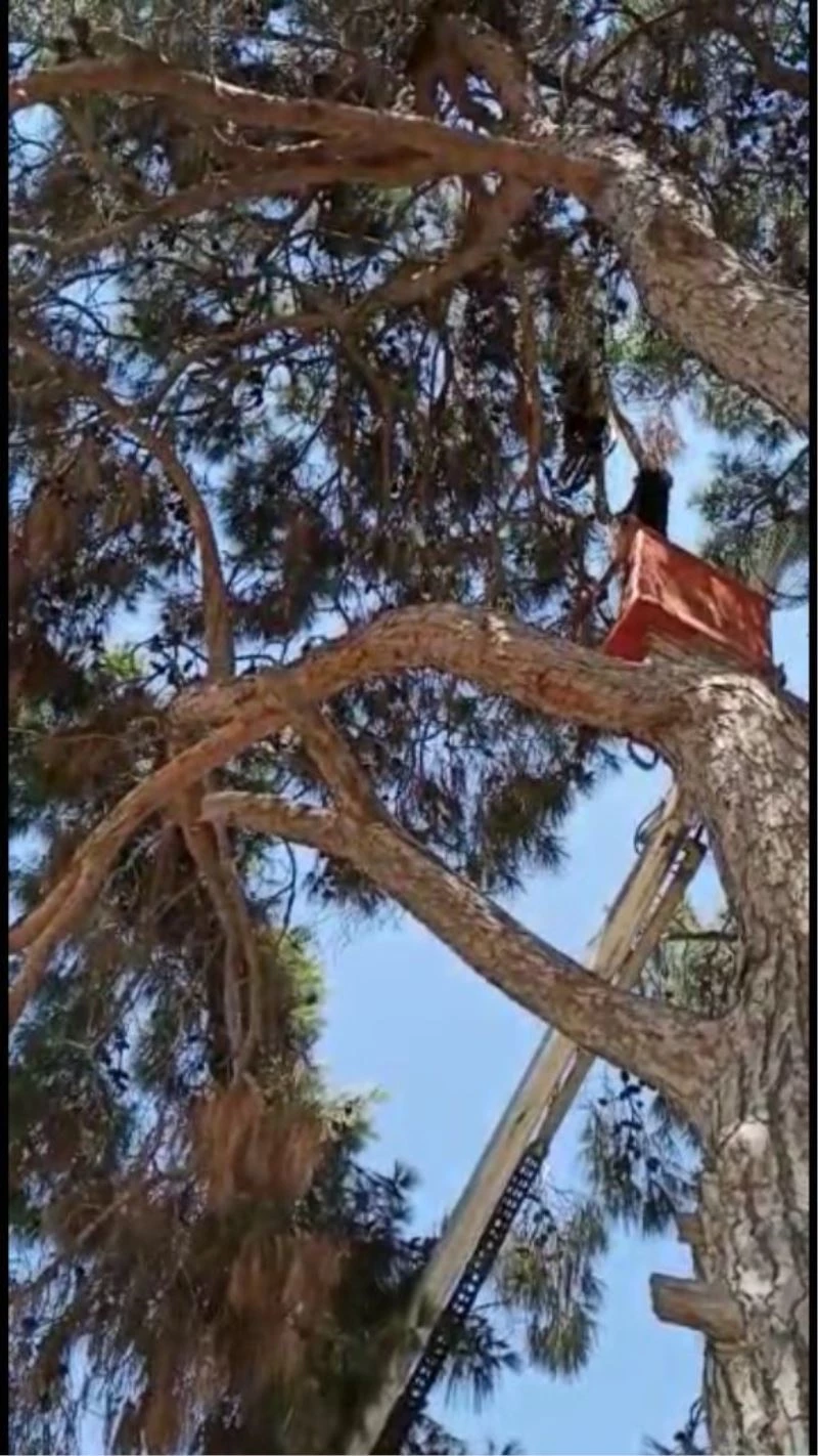 Adana’da ağaçtaki ipe ayağı takılıp mahsur kalan leyleği itfaiye ekibi kurtarıp su verdikten sonra doğaya bıraktı.