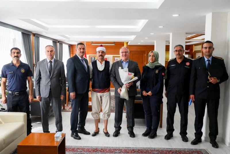 Belediye Başkan Yardımcısı Kayhan Işık, İtfaiye Müdürü Zekeriya Kayalı ve itfaiye personeli katılımıyla gerçekleyen ziyarette Başkan Bilgin’e çiçek takdim eden heyet, yıl boyunca yapılan faaliyetler hakkında bilgi verdi. Ziyarette geleneksel tulumbacı kostümlerini taşıyan itfaiye erleri de yer aldı.