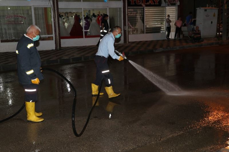 Ramazan Bayramı’nın yaklaşmasından dolayı her yıl olduğu gibi bayram öncesi ilçe merkezinde temizlik çalışmaları yapılıyor. Bu yılda Korona virüs dönemine denk gelmesinden dolayı daha titiz ve dikkatli bir şekilde yıkayan İtfaiye ekipleri şehri pırıl pırıl etmek için uğraşıyorlar.