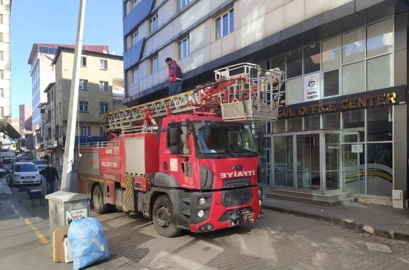 Ağrı’da bir iş merkezinin ikinci katında mahsur kalan kedi, itfaiye ekipleri tarafından kurtarılarak serbest bırakıldı.