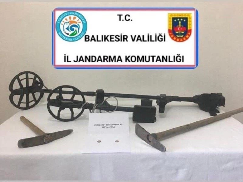 Edinilen bilgiye göre, Balıkesir İl Jandarma Komutanlığınca, tarihi eser kaçakçılığına yönelik yapılan istihbari çalışmalar neticesinde, İvrindi İlçesinde R.A., S.A. ve H.A. isimli şahısların izinsiz kazı yapacakları bilgisinin alınması üzerine kazı yapacakları bölgede yapılan kontrolde şüpheli şahıslar kazı yaparken suçüstü yakaladı. Şüphelilerle birlikte (2) adet sikke, (2) adet detektör, (2) adet kazma ele geçirildi. Jandarma ekipleri ele geçen malzemeye el koyarak, şüpheliler hakkında adli tahkikata başlanıldı.