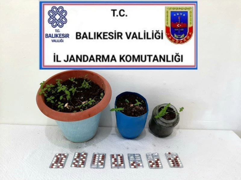 Balıkesir’in İvrindi ilçesinde jandarma ekipleri 2 zanlının evlerinde ve eklentilerinde 147 kök kenevir bitkisi ve 71 adet uyuşturucu hap ele geçirdi.