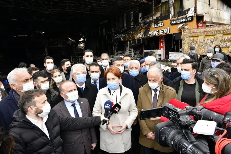 İYİ Parti lideri Akşener yangında zarar gören Kasaplar Çarşısı esnafını ziyaret etti