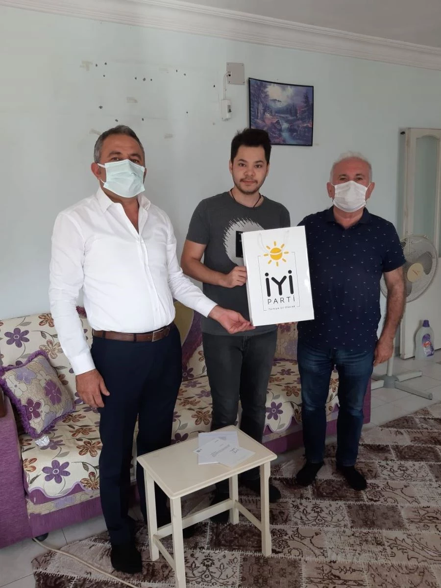 Osmaniye İl Başkanı Serat Kılıç, İl Sekreteri Ahmet Atmaca ile Merkez İlçe Başkanı Mustafa Tülücü üniversite öğrencisinin evine giderek tableti teslim etti.