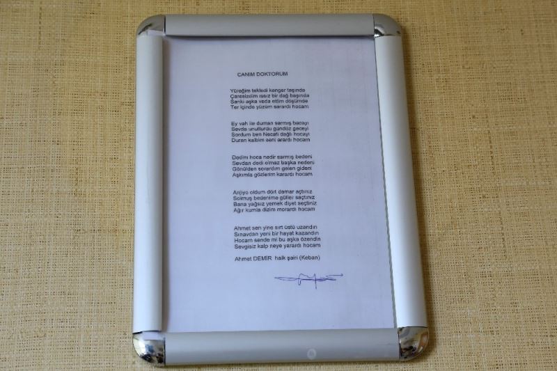 Hastasının zarif düşüncesi nedeniyle teşekkür eden Prof. Dr. Dağlı ise gönderdiği şiirin odasında sürekli kalacağını söyledi.