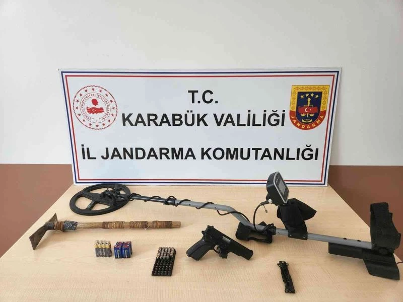 İl Jandarma Komutanlığına bağlı ekipler Safranbolu Yukarıçiftlik Köyü yakınlarındaki ormanlık arazide kaçak kazı yapıldığı ihbarı aldı. Yapılan incelemelerin ardından M.Y. (47) ve M.K.(47) isimli şahıslar kazı sırasında suçüstü yakalandı. Operasyonda dedektör, kazma, sırt çantası, bıçak, detektöre ait piller ve kuru sıkı tabanca ile 23 adet fişek ele geçirildi.