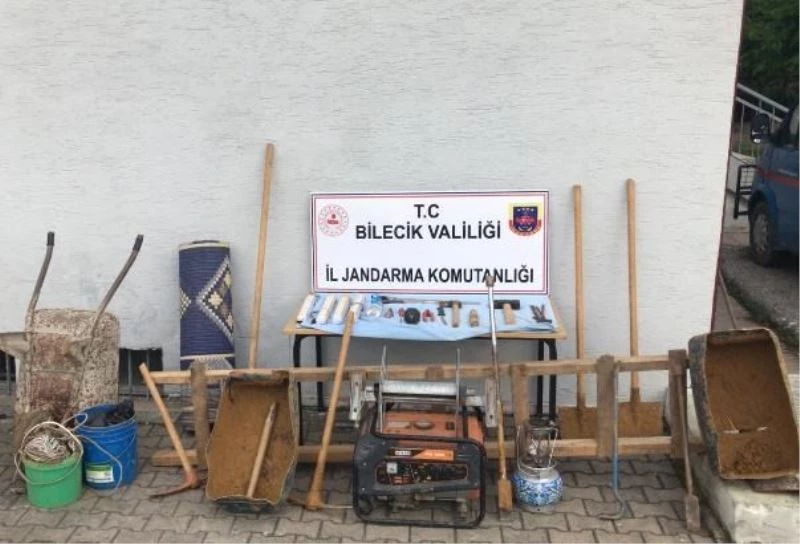 Bilecik İl Jandarma Komutanlığı ekiplerince Bilecik’in Söğüt ilçesi Sırhoca köyünde İ.T, İ.K, S.A, ŞA, E.Ö. ve S.K. isimli şahıslar tarihi eser bulmak maksadıyla izinsiz kazı yaptıkları esnada suçüstü yakalandı. Şahıslar ile birlikte kazı esnasında kullanılan 30 adet muhtelif kazı malzemesi ele geçirilmiş olup, şüpheliler hakkında yasal işlem başlatıldı.