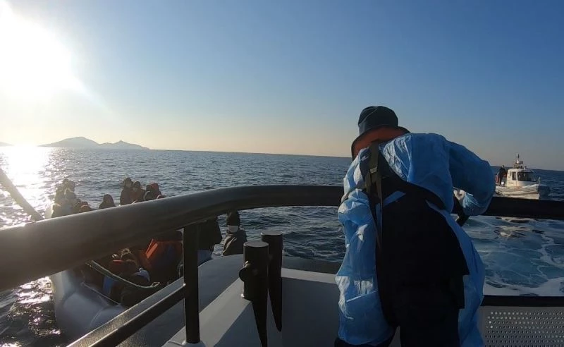 İzmir’in Dikili ilçesi açıklarında, Yunan unsurları tarafından Türk kara sularına geri itilen, lastik bot üzerindeki 33 düzensiz göçmen, ekipler tarafından kurtarıldı.