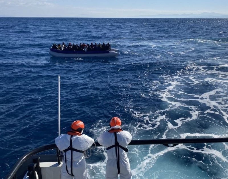 İzmir’in Çeşme ve Seferihisar ilçeleri açıklarında Yunanistan unsurlarınca Türk kara sularına geri itilen 62 düzensiz göçmen kurtarıldı.
