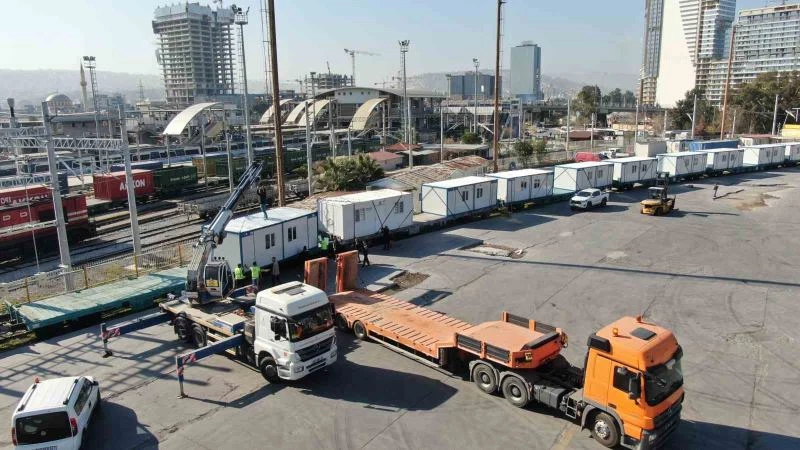 İzmir iş dünyası temsilcileri, deprem bölgesine konteyner gönderilmesi için tek yürek oldu. İmal edilen konteynerler ve müstakil tuvaletler, demir yolu ile İzmir’den deprem bölgesine ulaştırılıyor.