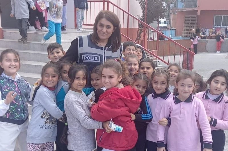 İzmir’de Karabağlar İlçe Emniyet Müdürlüğü personeli polis ekipleri, ilçede bulunan 92 okulda öğrencilerle buluştu.