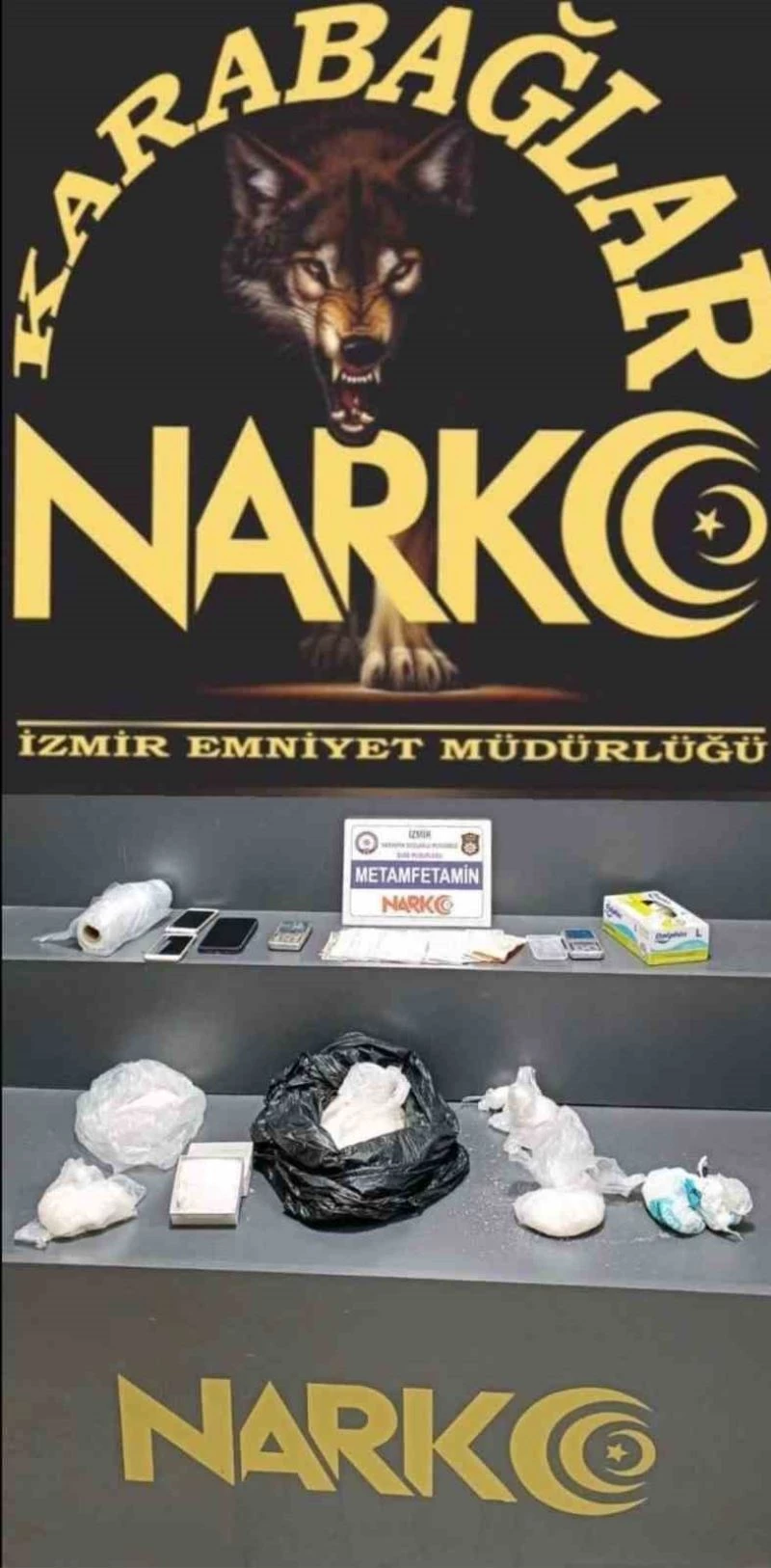 İzmir’in Karabağlar ilçesinde polis ekiplerinin düzenlediği operasyonda 1 kilo 900 gram metamfetamin ele geçirilirken, 1 kişi gözaltına alındı.
