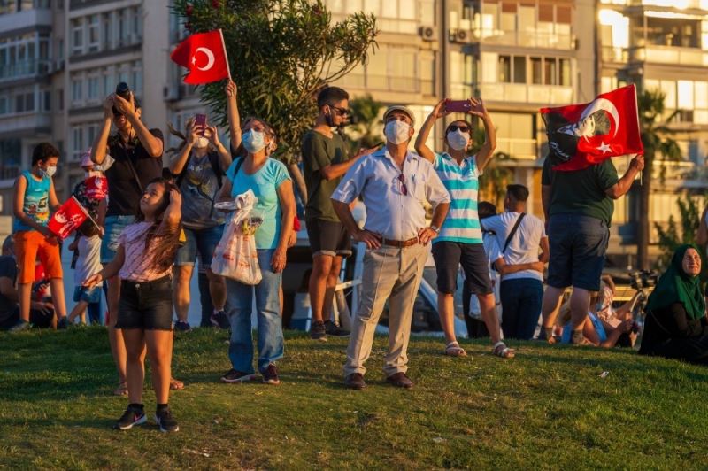 İzmir Büyükşehir Belediyesi, 30 Ağustos Zafer Bayramı etkinliklerini gökyüzüne de taşıdı. Paramotorların Gündoğdu Meydanı üzerindeki hava gösterisi renkli görüntüler oluşturdu.