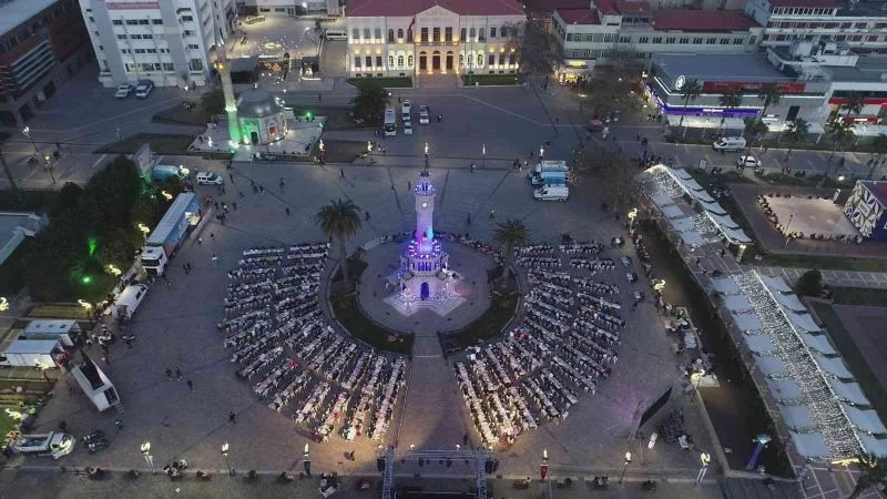 İzmir Büyükşehir Belediyesinin Konak Atatürk Meydanı’nda verdiği iftar yemeği, 3 bin İzmirliyi bir araya getirdi. Ramazan ayı boyunca kentin çeşitli yerlerinde toplam 600 bin kişilik iftar yemeği dağıtacak. İzmirliler de Halkın Bakkalı web sitesi üzerinden iftar sofralarına destek olabilecek.
