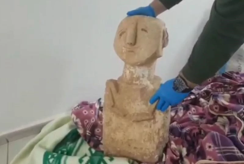 İzmir’in Bornova ilçesinde bir şüpheli şahsın çantasından 11 bin 500 yıl öncesine ait olduğu belirlenen insan tasvirli heykel ele geçirildi.