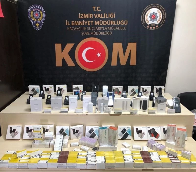İzmir İl Emniyet Müdürlüğü Kaçakçılık Suçlarıyla Mücadele Şube Müdürlüğü ekipleri, 19-25 Nisan tarihleri arasında 17 ayrı operasyon gerçekleştirdi. Operasyonlarda ekipler tarafından bin 375 paket kaçak sigara, 108 bin 600 adet makaron, 402 kilogram tütün, bin 389 adet puro, 443 adet muhtelif emtia, 263 adet tarihi eser, bin 800 litre kaçak akaryakıt ve 23 şişe sahte içki ele geçirildi. Ele geçirilen ürünlerin piyasa değerinin 2 milyon 613 bin 870 lira olduğu öğrenilirken, 1 milyon 942 bin 870 liralık vergi kaybının önlendiği kaydedildi. 17 ayrı operasyonda yakalanan 17 şüpheli hakkında ise işlem yapıldığı bildirildi.