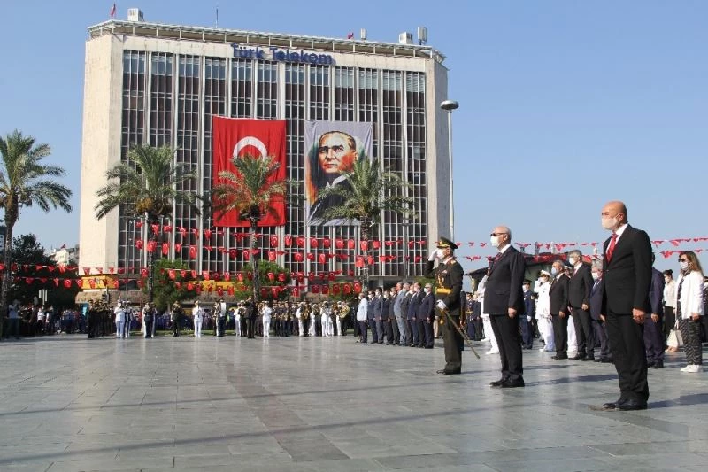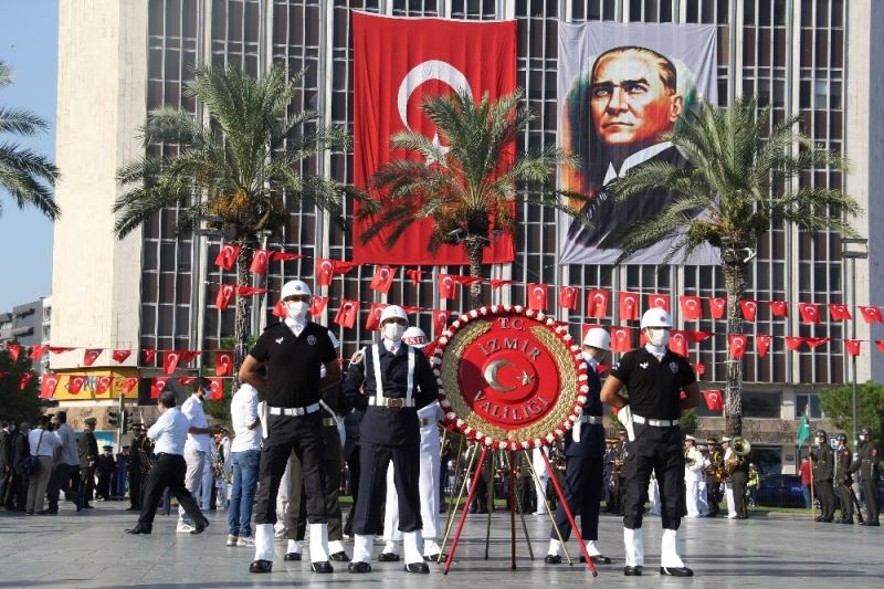 30 Ağustos Zafer Bayramı 98. yıl dönümü etkinlikleri tüm yurtta olduğu gibi İzmir’de de kutlanmaya başladı. Cumhuriyet Meydanı’nda başlayan törene İzmir Valisi Yavuz Selim Köşger, Ege Ordu Komutanı Korgeneral Ali Sivri, İzmir Milletvekilleri, İzmir Büyükşehir Belediye Başkanı Tunç Soyer, Ege Üniversitesi Rektörü Necdet Budak katılırken, tören korona virüs önlemleri sebebiyle sosyal mesafeli bir biçimde yapıldı. Törende Atatürk anıtına çelenk bırakılırken akabinde saygı duruşunda bulunuldu ve İstiklal Marşı okundu. Günün anlam ve önemini belirten konuşmayı Topçu Yüzbaşı Kubilay Özçelik yaptı.
