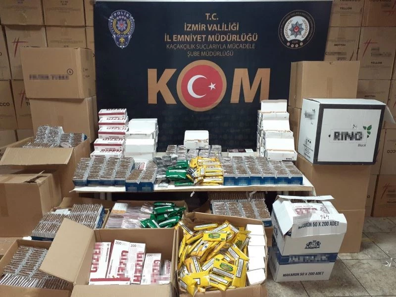 İzmir İl Emniyet Müdürlüğü Kaçakçılık Suçlarıyla Mücadele Şube Müdürlüğü ekipleri, 26 Nisan-2 Mayıs tarihleri arasında kent genelinde kaçakçılara yönelik 11 ayrı operasyon gerçekleştirdi. Operasyonlarda piyasa değeri toplam 6 milyon 48 bin 680 lira olan 129 bin 830 adet doldurulmuş makaron, 244 bin 400 adet makaron, 687 kilogram tütün, 127 adet muhtelif emtia, 27 adet tarihi eser ve 59 litre sahte içki ele geçirildi. Düzenlenen 11 ayrı operasyonda 14 şüpheli hakkında işlem yapıldığı öğrenildi.