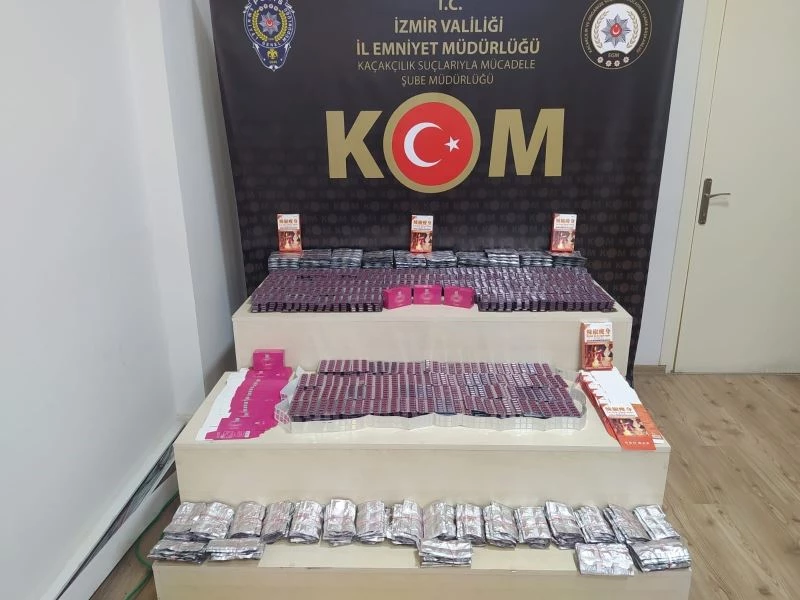 İzmir İl Emniyet Müdürlüğü Kaçakçılık Suçlarıyla Mücadele Şube Müdürlüğü ekipleri, 16-22 Ağustos tarihleri arasında kent genelinde 7 ayrı operasyon gerçekleştirdi. Yapılan aramalarda piyasa değeri toplam 250 bin lira olan 62 litre sahte içki, 71,5 litre etil alkol, 570 adet kaçak alkol malzemesi, 16,5 litre içki aroması, 3 bin litre katkılı kaçak akaryakıt, 3 bin 535 adet muhtelif emtia, 13 bin 800 adet hap ele geçirildi.