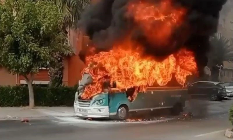 İzmir’de alev alan yolcu minibüsü cayır cayır yandı
