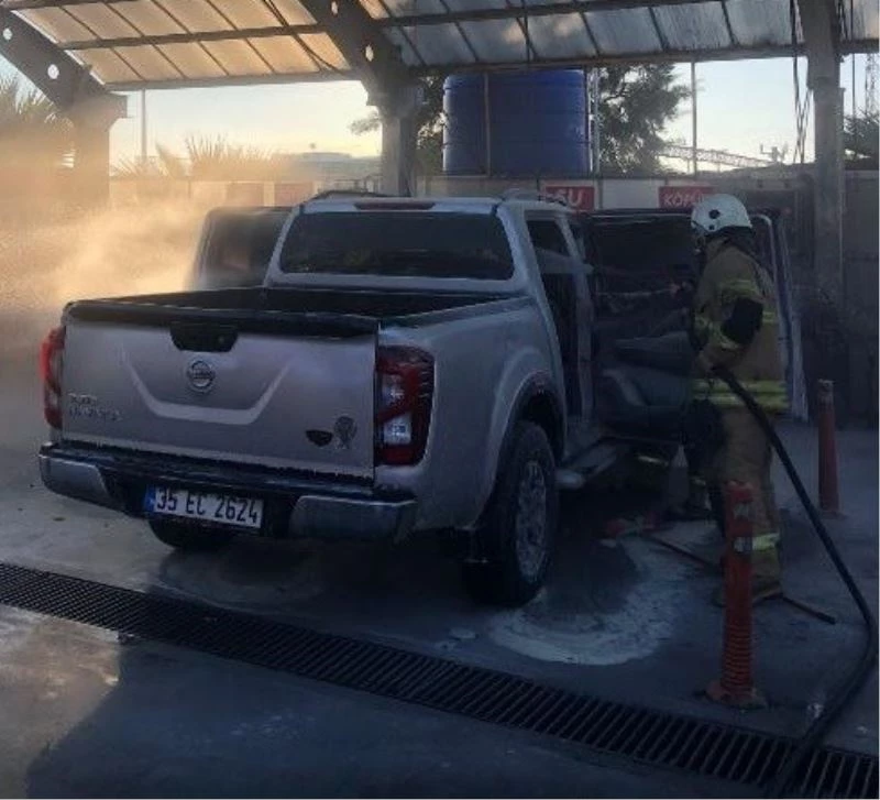 Yangın, akşam saatlerinde Aliağa ilçesine bağlı Hürriyet caddesinde bulunan benzin istasyonunun oto yıkama bölümünde meydana geldi. Edinilen bilgiye göre, araç sürücüsü H.C. oğlu ile birlikte 35 EC 2624 plakalı kamyoneti yıkamak için benzin istasyonundaki oto yıkama bölümüne geldi. İddialara göre, araç sürücüsü H.Ç. kamyonetine köpük sıktıktan sonra su ile durulama yaptığı esnada henüz belirlenemeyen bir sebepten dolayı yangın çıktı. Aracın arka koltuğunda bulunan Y.Ç. alevlerin içinde kaldı. Baba H.Ç. ile benzinlik çalışanlarının yangın tüpü ile müdahalesiyle araç içerisinde bulunan Y.Ç. kurtarıldı. İhbarı üzerine olay yerine kısa süre içerisinde gelen itfaiye ekiplerince yangın tamamen söndürüldü. Yangında yaralanan çocuk Y.Ç. ambulansla Aliağa Devlet Hastanesine kaldırıldı. Burada yaralı Y.Ç yapılan müdahale ardından Ege Üniversitesi Hastanesine sevk edildiği öğrenildi.