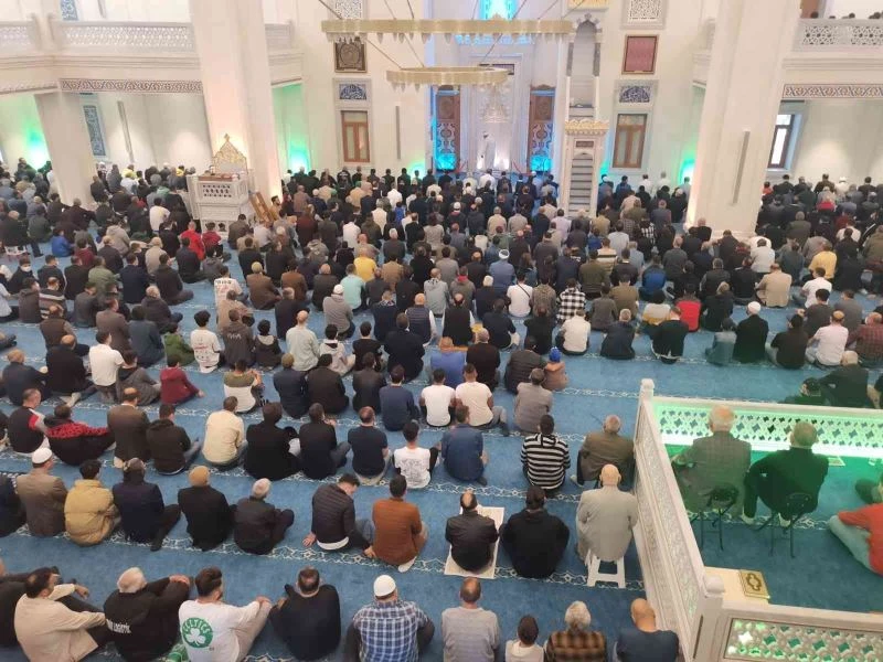 İzmir’de Ramazan Bayramı’nda çok sayıda vatandaş bayram namazını eda etmek için Bilal Saygılı Camii ve Külliyesi’nde bir araya geldi.
