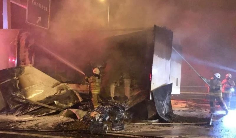 İzmir’de biber yüklü tırın dorsesi, alev alev yandı