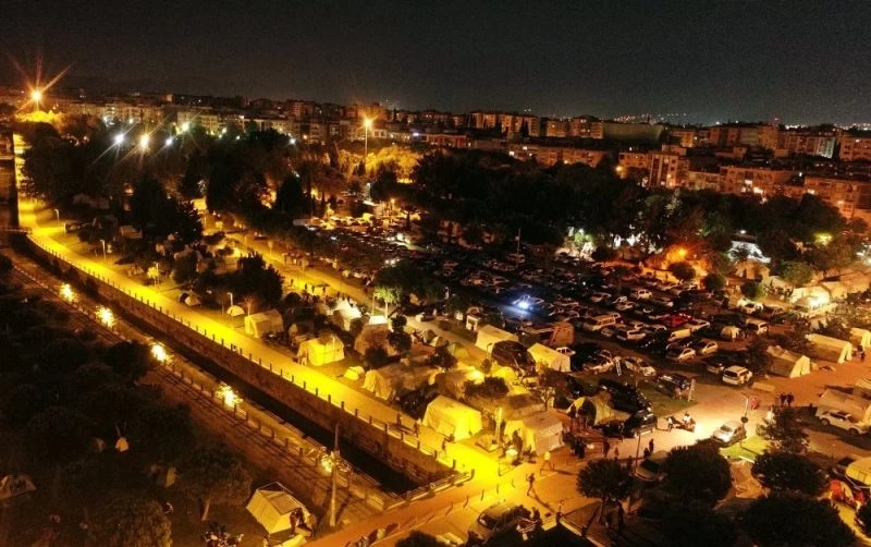 İzmir’in Seferihisar ilçesi açıklarında dün saat 14.51’de Ege Denizi’nde 6,6 büyüklüğünde meydana gelen depremin ardından, binaları hasarlanan ve evlerine girmekte tedirginlik yaşayan vatandaşlar için Bornova ilçesindeki Aşık Veysel Rekreasyon Alanı’na AFAD, İzmir Büyükşehir Belediyesi, çevre ilçelerin belediyeleri ve STK’lar tarafından çadır kurulmaya devam ediliyor. Şuana kadar yüzlerce çadırın kurulduğu bölgede, dışarıda kalan vatandaşların geceyi rahat geçirebilmeleri için AFAD, belediye ekipler, STK’lar, polis, jandarma ve esnaflar adeta seferberlik içerisinde. Vatandaşlara, soğuktan etkilenmemeleri için ekipler tarafından battaniye, sıcak çorba ve gıda yardımı yapılıyor. Çalışmalara ilçedeki esnaflar da yiyecek ve içecek konusunda ücretsiz destek veriyor.
