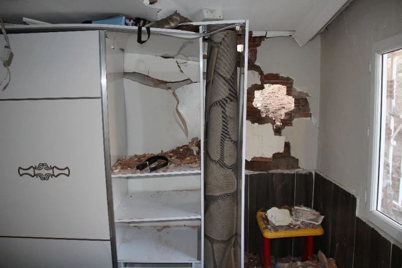 Evinin çatısına kaya parçası düşen mahalle sakini Ferit Kartal, “Biz o anda evdeydik. İlk önce şimşek düştü zannettik. Çocuklarım korkmuştu, hemen kendimizi dışarıya attık. Buradaki gardırop olmasaydı kaya parçası evin içine girecekti. Belki de çocuğum hayatını kaybedecekti. Yukarıdaki evlerin temellerinin bazıları kaydı, bunlar eski yapı“ dedi.