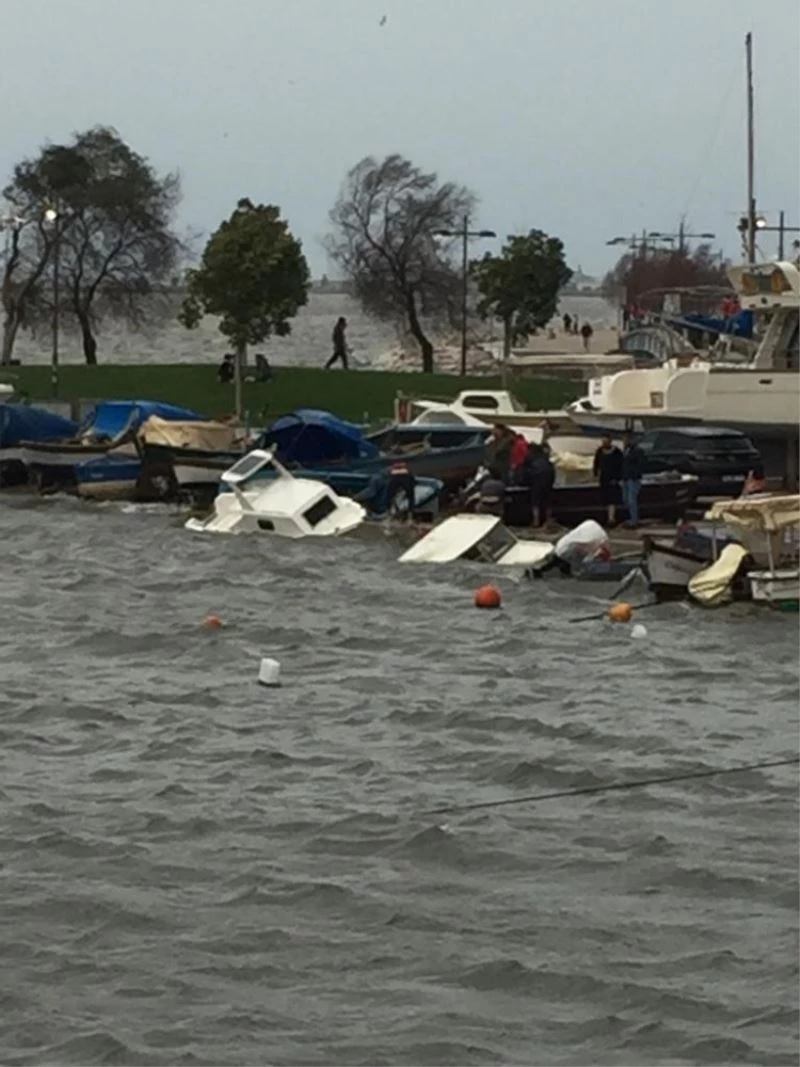 İzmir’de fırtınada çok sayıda tekne batarken, ağaçlar devrildi, bazı binaların çatıları da uçtu.
