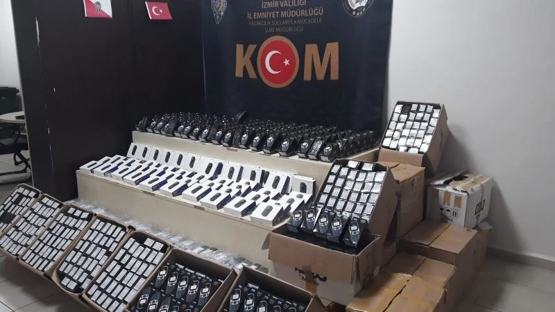 İzmir İl Emniyet Müdürlüğü Kaçakçılık Suçlarıyla Mücadele Şube Müdürlüğü ekipleri, bir adreste gümrük kaçağı cep telefonu bulunduğu bilgisi üzerine çalışma başlattı. Ekiplerin adreste yaptığı aramada, 3 bin 810 adet kaçak cep telefonu, 3 bin 735 adet batarya, 3 bin 650 adet şark aleti olmak üzere toplam 11 bin 195 adet gümrük kaçağı emtia ürün ele geçirildi. Ele geçirilen ürünlerin piyasa değerinin yaklaşık 1 milyon lira olduğu kaydedildi.