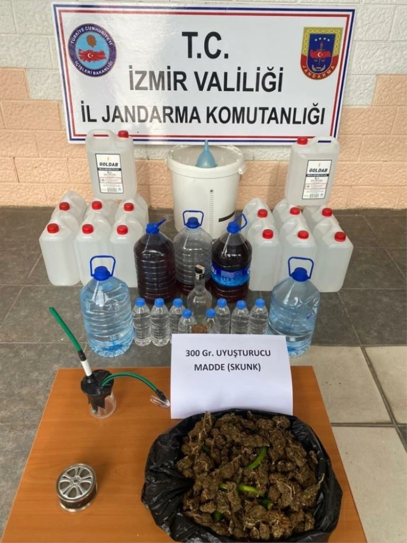 İzmir İl Jandarma Komutanlığınca, sahte ve kaçak içki ticareti ile kullanımının engellenmesi amacıyla yapılan istihbari çalışmalar sonucu Menderes ilçesinde bulunan iki ayrı adreste, kaçak alkolle içki üretimi ve uyuşturucu satışı yapıldığı duyumu alındı. Jandarma ekiplerince her iki adreste yapılan aramada, 40 litre etil alkol, 14 litre kaçak votka, 30 litre kaçak rakı, 10 litre kaçak viski ve 200 gr bonzai ele geçirildi. Olayla ilgili olarak 2 şüpheli yakalanırken, şiddete uğradığı tespit edilen bir kadın mağdur da 6284 sayılı kanun kapsamındaki işlem sonrası Şiddeti Önleme ve İzleme Merkezine (ŞÖNİM) gönderildi. Şüphelilerin adli işlemleri devam ediyor.