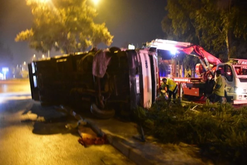İzmir’de kontrolden çıkan kamyon yan yattı: 1 ağır yaralı