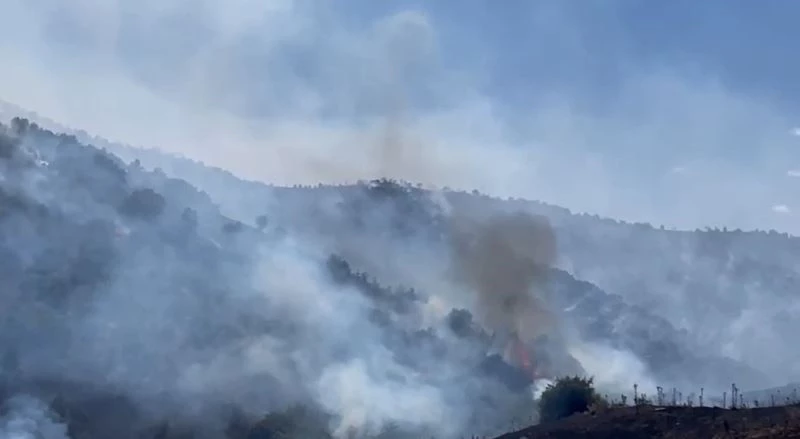 İzmir’de makilik alandaki yangına havadan ve karadan müdahale